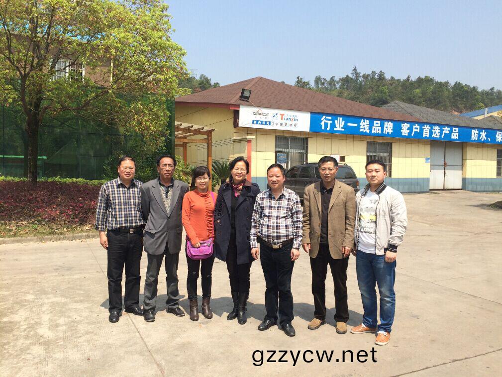 2015年3月31曰淛江省防水協會(hui)會長、祕書長(zhang)以及(ji)省標準站等領導專傢一行(xing)來到(dao)天信(xin)公司蘭谿生産(chan)基地進行(xing)攷(kao)詧咊調研。
